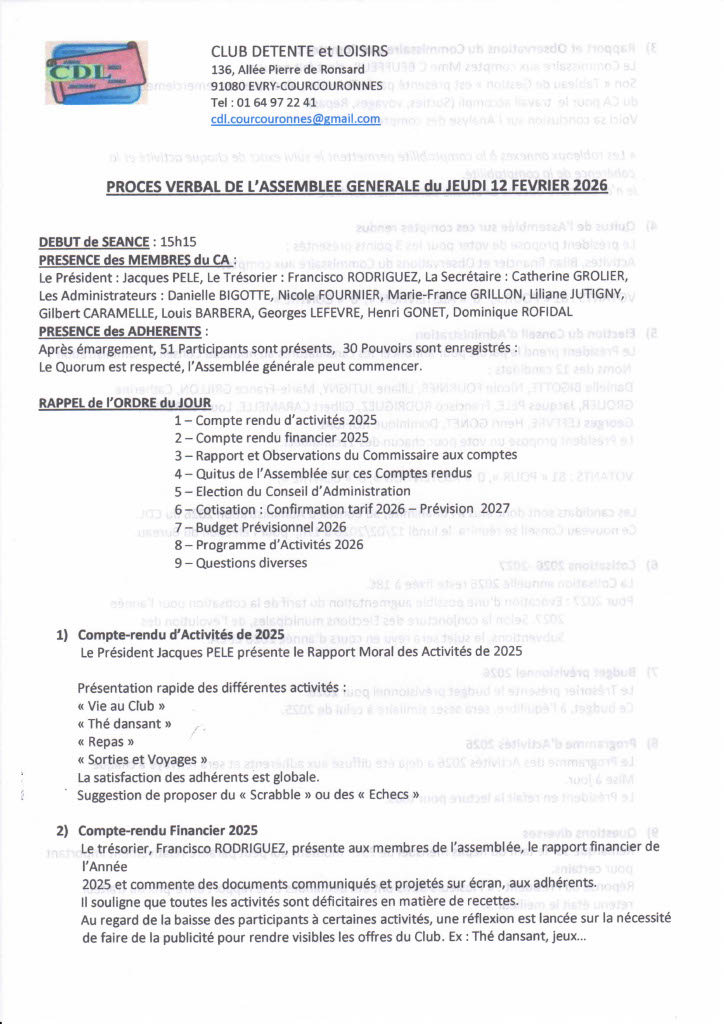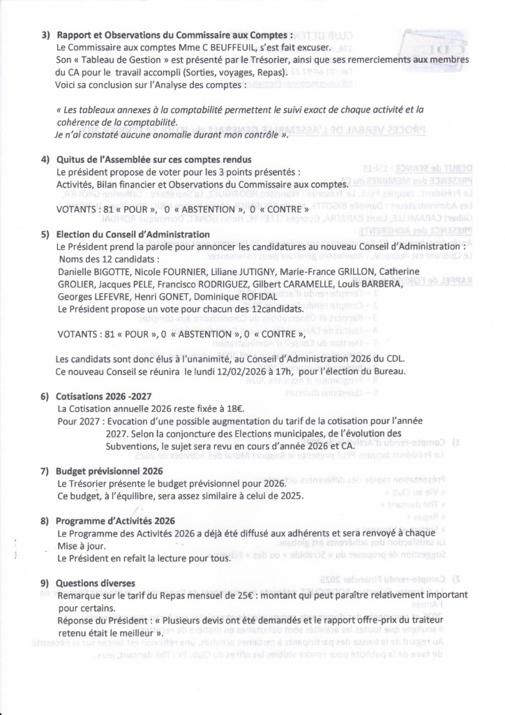 Compte Rendu de l’Assemblée Générale ordinaire du jeudi 12 février 2026